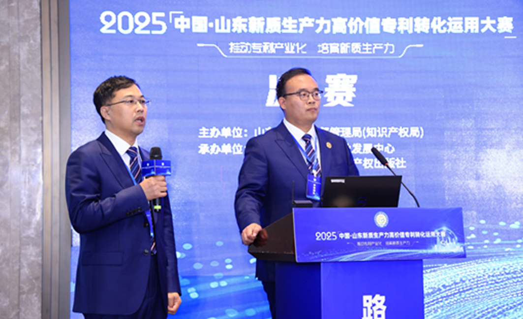 近日,2025 中國·山東新質生產力高價值專利轉化運用大賽(簡稱“新高賽”)決賽結果在濟南揭曉。本屆大賽由山東省市場監督管理局(知識產權局)牽頭組織,山東省知識產權事業發展中心與知識產權出版社有限責任公司聯合承辦。