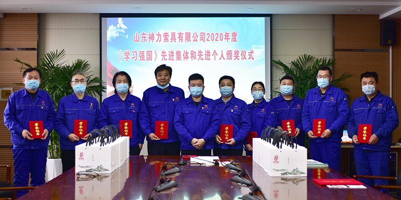 2021年1月27日,山東神力索具有限公司2020年度學習強國先進集體和先進個人頒獎儀式在公司黨員活動室舉行,學習強國學習平臺工作小組副組長、工會主席李廣德主持頒獎儀式,學習強...
