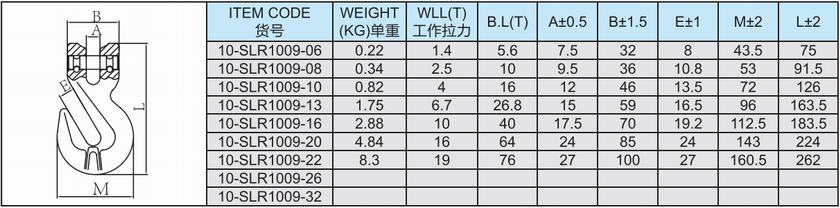 常規標記:10-10  WLL 4 T  CE  SLR  + BATCH NUMBER(批號)